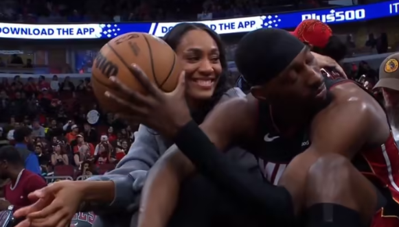 前方消息称,球馆地板下的冰面已出现融化现象,馆内湿度更是达到了日常水平的近两倍。趁着场上队友都在进行热身投篮,热火球星阿德巴约与专程来观战的女友、WNBA巨星阿贾-威尔逊在场边亲密互动,大秀恩爱,似乎完全没有受到比赛延期的影响。